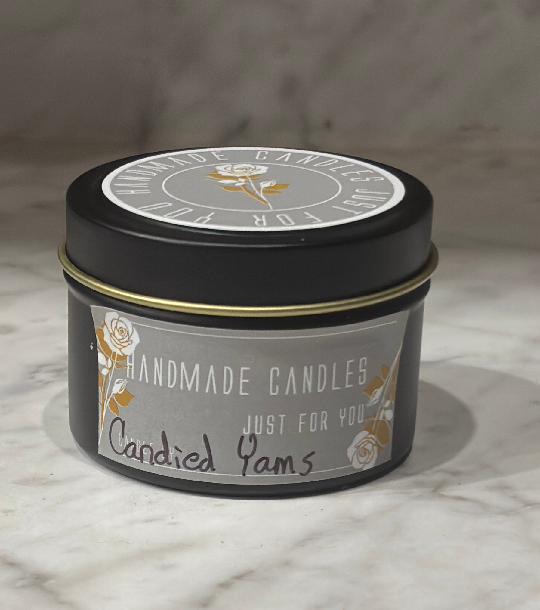 Candied Yams (Holiday Scented) 100% Soy Wax Candle 4 ounce or 8 ounce Black Matte Container Tin