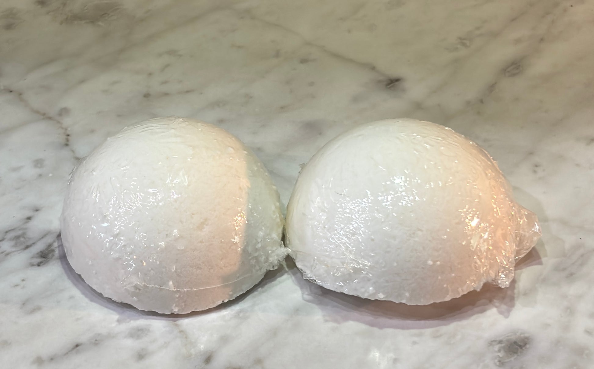 Crafted by hand using Epsom salt, citric acid, and baking soda, these bath bombs feature a warm vanilla fragrance derived from vanilla oil. Enriched with coconut oil, they provide gentle skin nourishment. Sold in sets of two, and weighing approximately 4 oz each.