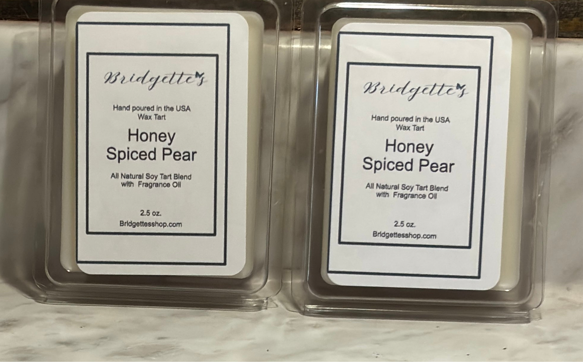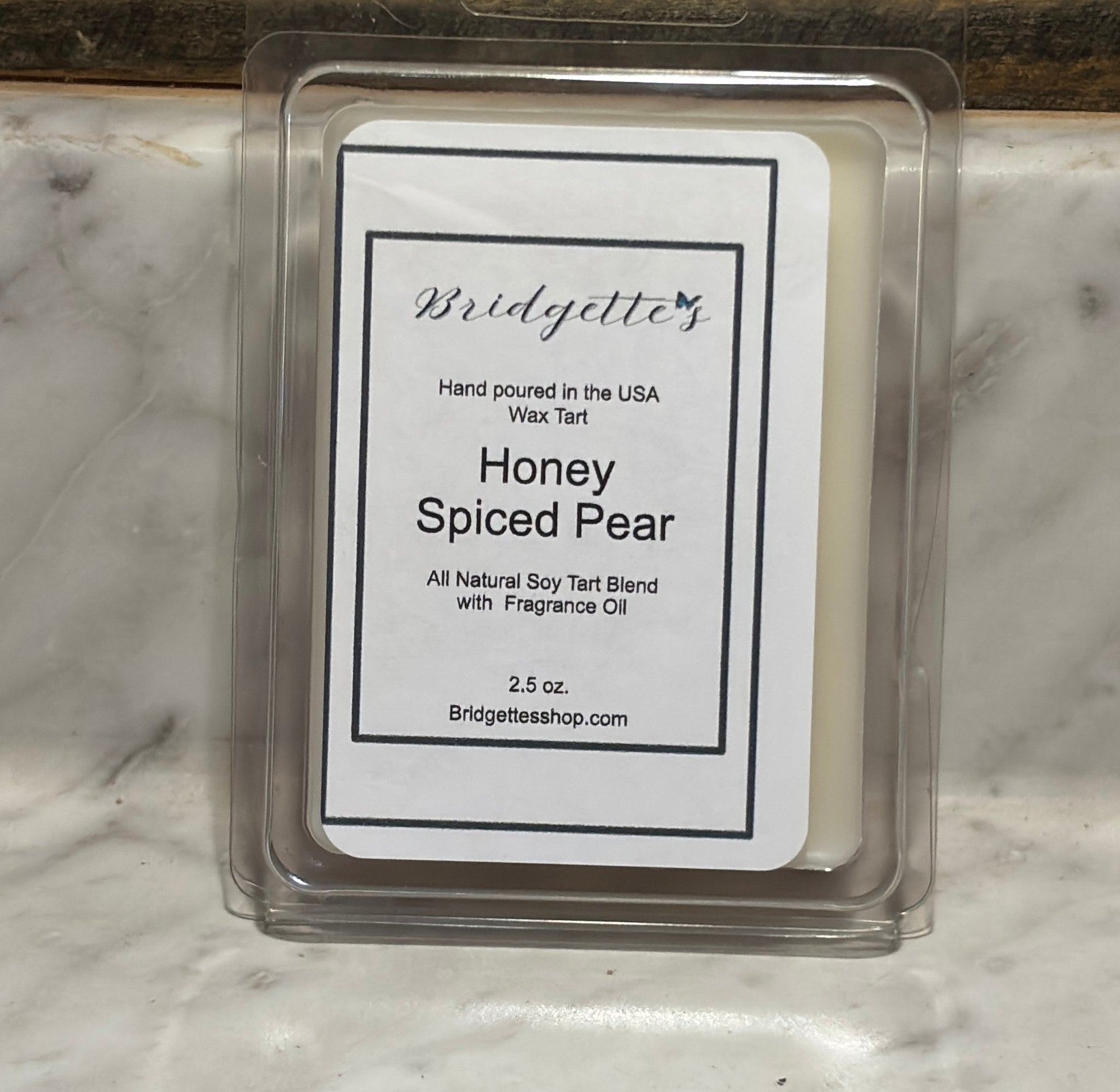 Experience the cozy scent of honey spiced pears with this 2.5-ounce soy wax tart melt, available in a convenient six-pack. Crafted from a premium soy wax blend, it fills your space with a warm, inviting fragrance.